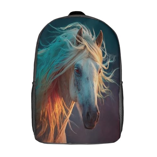 kaiyun Cheval à la longue crinière flottant au vent Sacs À Dos,3D Imprimé Étudiant Cartable Garçons Filles Livre Sac Pour Maternelle Ou Primaire 17inch