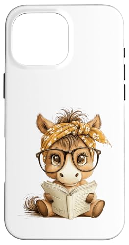 Bandana Intelligent pour Lire Un Livre de Lecture de Cheval Mignon Coque pour iPhone 16 Pro Max