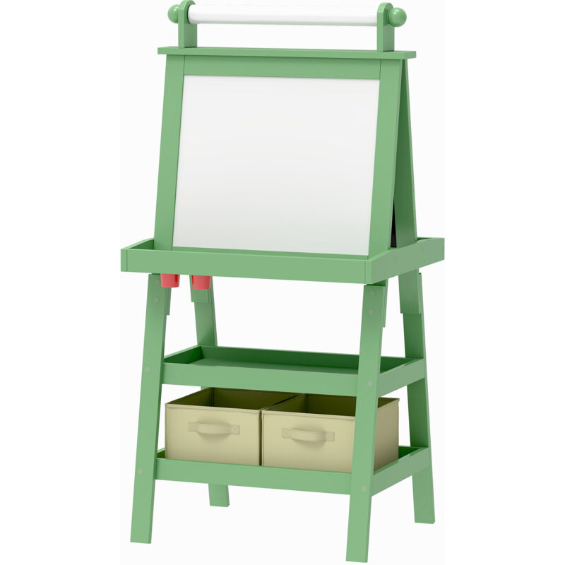 AIYAPLAY Tableau chevalet enfant ardoise double face tableau à craie rouleau papier 2 paniers 54 x 46,5 x 93 cm vert