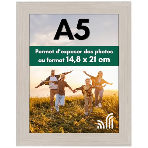 Americanflat Cadre Photo A5 Bois Flotté - MDF avec Verre Incassable Poli, Chevalet & Matériel de Suspension Intégré - Format Horizontal et Vertical pour Mur et Dessus de Table - 14,8x21 cm