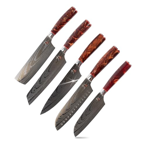 MasterPRO Tetsu | Couteaux de cuisine | Ensemble complet de 5 couteaux japonais | Parfait pour couper tous les types d'aliments | Cuisine Professionnelle | Avec revêtement en titane et manche en bois