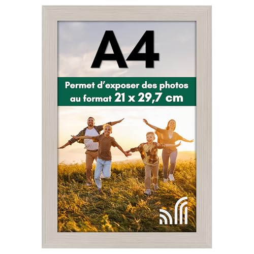 Americanflat Cadre Photo A4 Bois Flotté - MDF avec Verre Incassable Poli, Chevalet & Matériel de Suspension Intégré - Format Horizontal et Vertical pour Mur et Dessus de Table - 21x29,7 cm