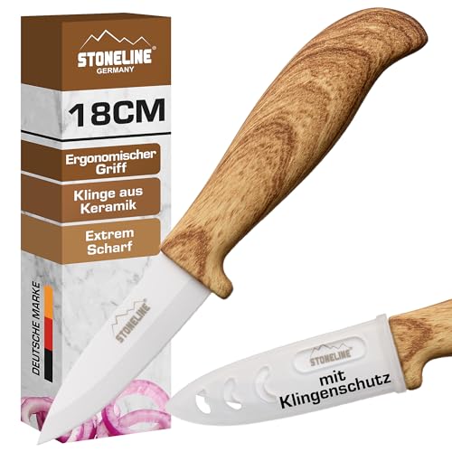 STONELINE Back to Nature Couteau de Cuisine 18,2 cm, en Céramique, pour Couper des Fruits et Légumes, manche aspect bois