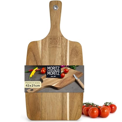 Moritz & Moritz Planche de service en bois avec poignée – Planche en bois d'acacia comme décoration – Plateau de service en bois – Pour couper, organiser et servir