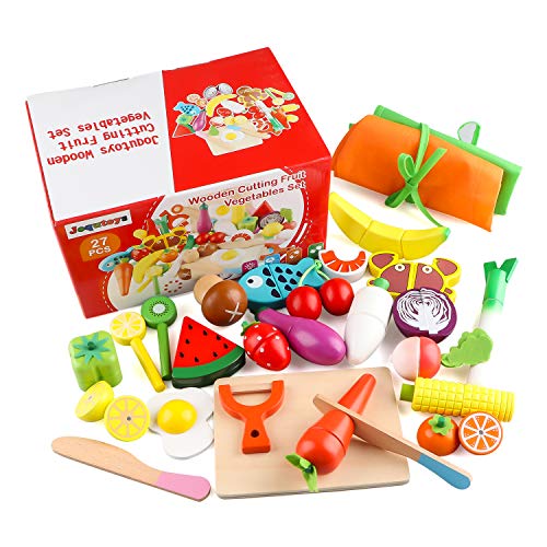 jacootoys 27 pièces Jouet à Couper Magnétiques Fruits en Bois et Légumes à Couper Cuisine Éducatif Tôt Développement Intellectuel pour Bébé Enfant
