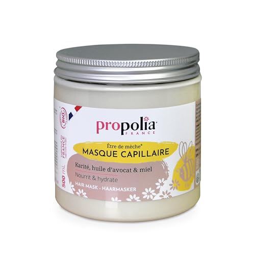 PROPOLIA - Bio - Masque Capillaire - Nourrit et hydrate les Cheveux secs et abimés - Miel, Beurre de Karité & Huile d’Avocat - Fabriqué en France - 500mL