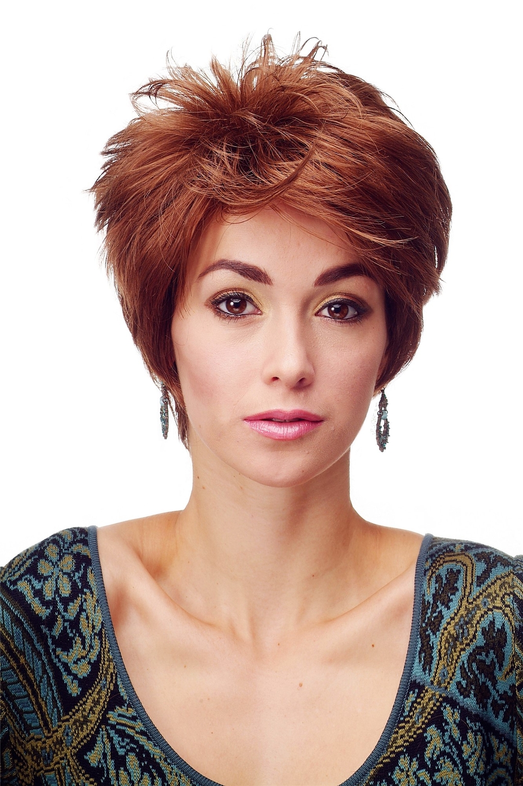 Perruque Femme Très Court 60er Pixie Cut Coiffure Cheveux Frange Rouge Cuivré