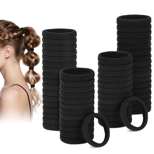 Euqvunn 60 Pièces Elastique Cheveux, Chouchou Cheveux Femme pour Cheveux Épais, Elastiques à Cheveux Epais Sans Dommages, Polyester, Élastiques Noir Doux, Accessoires Cheveux Fille, Enfant, Homme