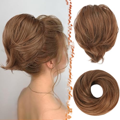 BARSDAR Cheveux Chignon Queue de Cheval Extension, Raides Synthétique Court Queue de Cheval Chignon Extension de Cheveux Elastique Cheveux Chouchou Postiche pour Femmes (Doré Cuivré & Clair Brun)