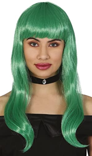 Fiestas Guirca Perruque Verte Cheveux Longs Vagues Frange