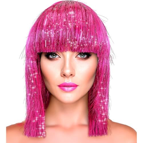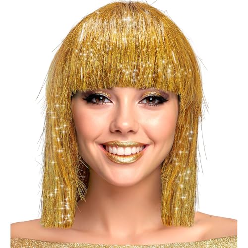 W WIDMANN MILANO Party Fashion - Perruque Bob avec frange, cheveux pailletés pour femmes, accessoire de costume pour carnaval et fête