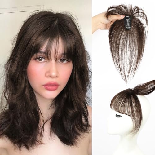 Vigorous Extensions de cheveux à clipser avec frange 100% vrais cheveux humains - Frange incurvée à clipser - Couverture à 360° - Pour femme - Pour un usage quotidien (marron moka)