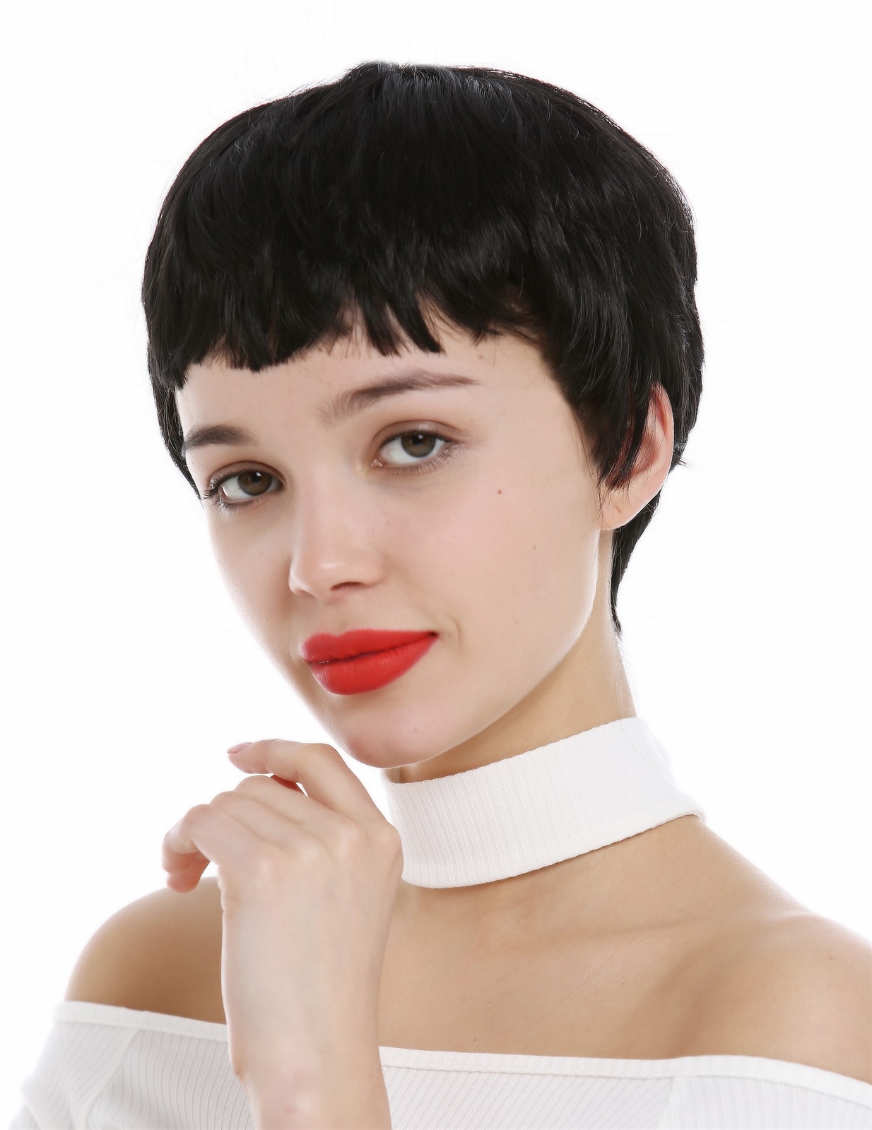 Perruque Femme Très Court Pixie à Couper Coiffure Cheveux Frange Noir SA098-1B