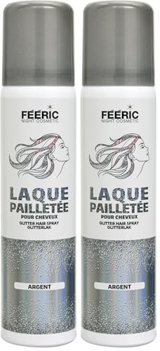 Laque Pailletée Cheveux Argent– Spray Paillettes Cheveux Tenue Longue – Glitter Hair Spray Festival Soirée – Sans Microplastique – FEERIC – Fabriqué en France (Lot de 2)