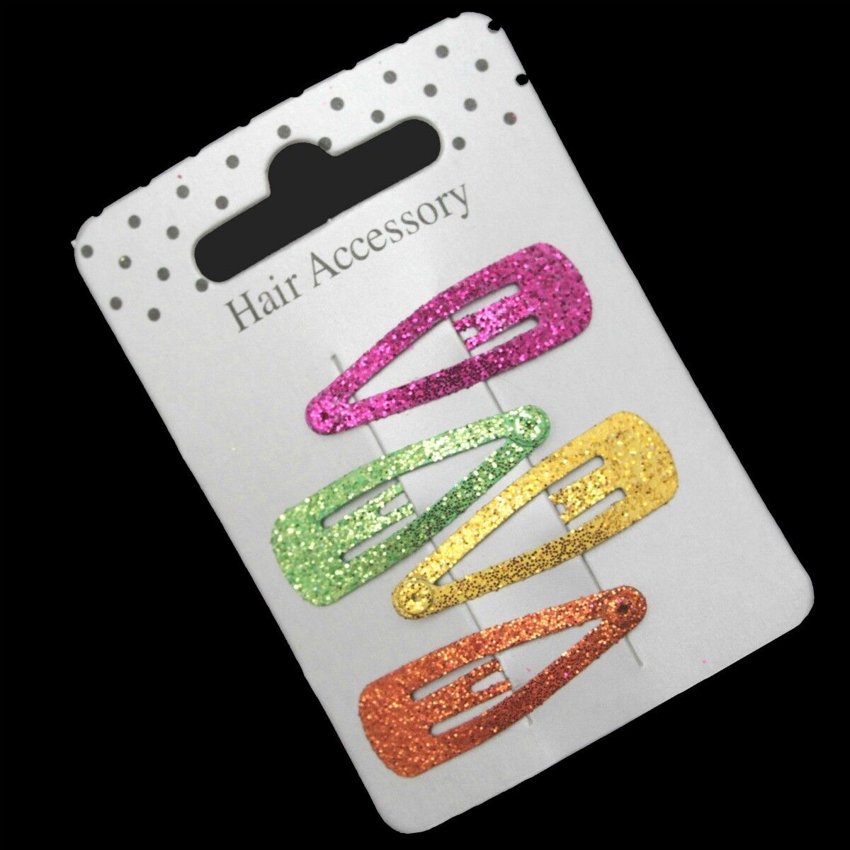 4 petites pinces à cheveux clic clac - paillettes 3cm rose vert jaune & orange