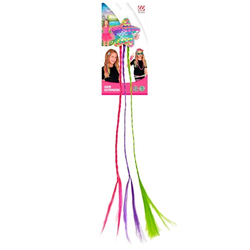 WIDMANN 03005 – Pince à cheveux avec étoile à paillettes et trois tresses colorées, extension de cheveux, mèches, licorne, carnaval, fête à thème