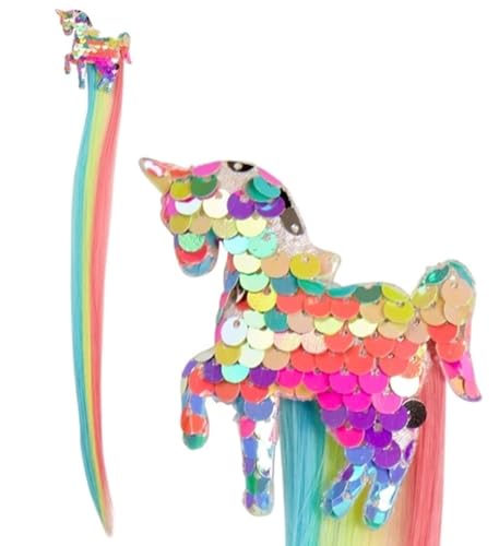 Widmann 03006 – Pince à cheveux avec licorne à paillettes et cheveux colorés, extensions de cheveux, mèches, licorne, carnaval, fête à thème