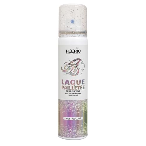 Laque Pailletée Cheveux Multicolore – Spray Paillettes Cheveux Tenue Longue – Glitter Hair Spray Festival Soirée – Sans Microplastique – FEERIC – Fabriqué en France