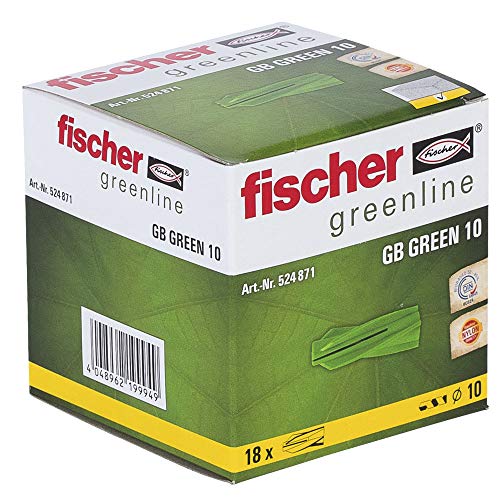 fischer - Cheville pour béton cellulaire GB 10, fabriquée à base de matières premières renouvelables/Boîte de 18 Vert 10 x 55