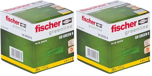 fischer - Cheville pour béton cellulaire GB 8, fabiquée à base de matières premières renouvelables/Boîte de 20 Vert 8 x 50 (Lot de 2)