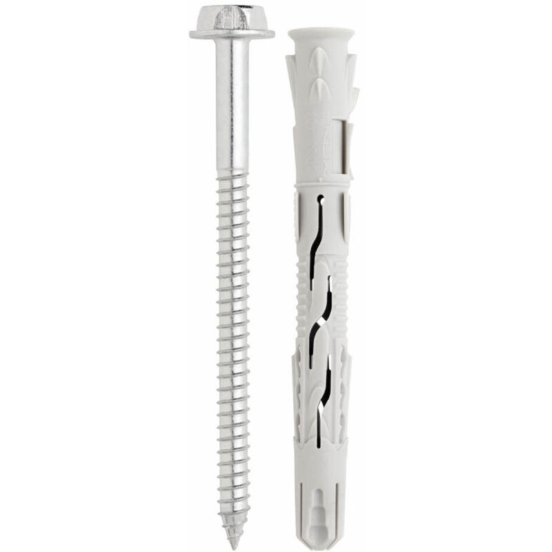 Index – Boite de 50 cheville nylon universelle 10 x 60 mm – Tête hexagonale zinguée – Homologuée ATE pour béton et brique pleine
