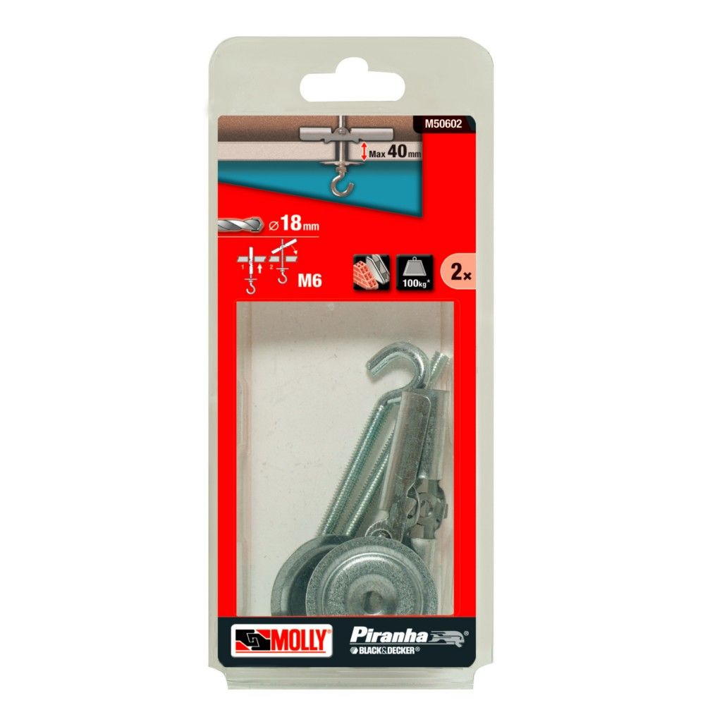 Molly M50602-XJ Chevilles à bascule avec M6 crochets, Gris, Set de 2 Pièces (Lot de 2)