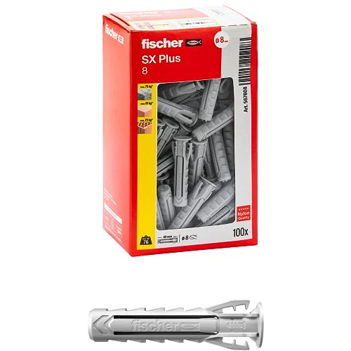 Fischer 100 chevilles SX Plus 8 x 40 mm pour mur plein, brique perforée, maçonnerie, béton, pour la fixation de lustres, meubles, armoires, étagères, 567608