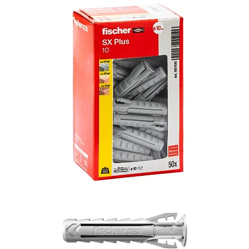 Fischer 50 chevilles SX Plus 10 x 50 mm pour mur plein, brique perforée, maçonnerie, béton, pour la fixation de lustres, meubles, armoires, étagères, étagères, 567610