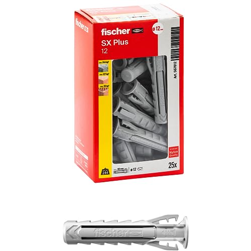 Fischer 25 chevilles SX Plus 12 x 60 mm pour mur plein, brique perforée, maçonnerie, béton, pour la fixation de lustres, meubles, armoires, étagères, étagères, 567612