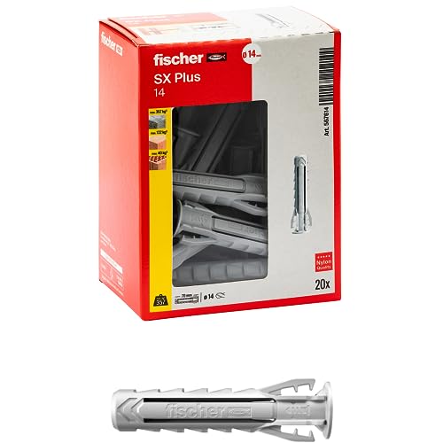 Fischer 20 chevilles SX Plus 14 x 70 mm pour mur plein, brique perforée, maçonnerie, béton, pour la fixation de lustres, meubles, armoires, étagères, étagères, 567614