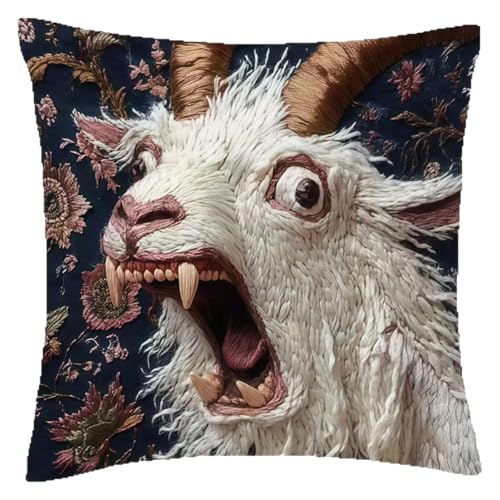 Obesntln De Coussin Drôle De Chèvre - en Peluche À Poils Courts 45x45 Cm, Décorative Originale d'animal Fou, Motif De Chèvre Hurlant Drôle, Matériau Doux Imprimé Coloré | Accessoire Coussi