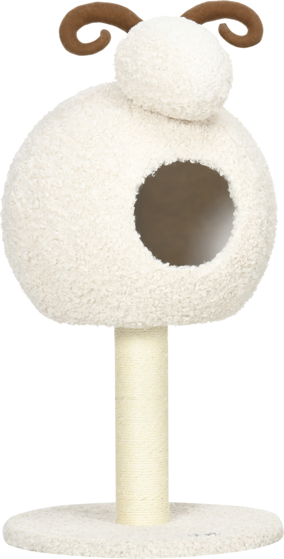 PawHut Arbre à chat de 80 cm avec grotte pour chat - Design chèvre - Arbre d'escalade avec colonne en sisal et cadre en peluche - Meuble pour chat - Blanc crème