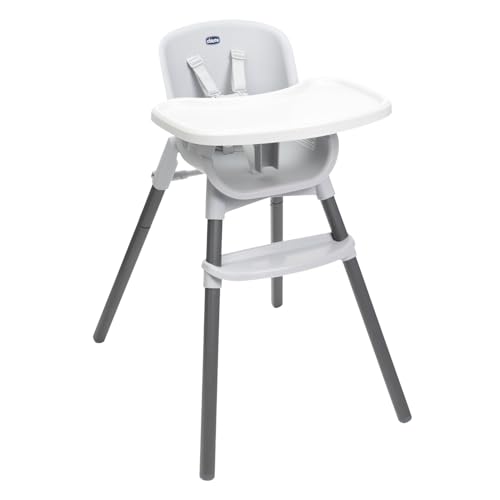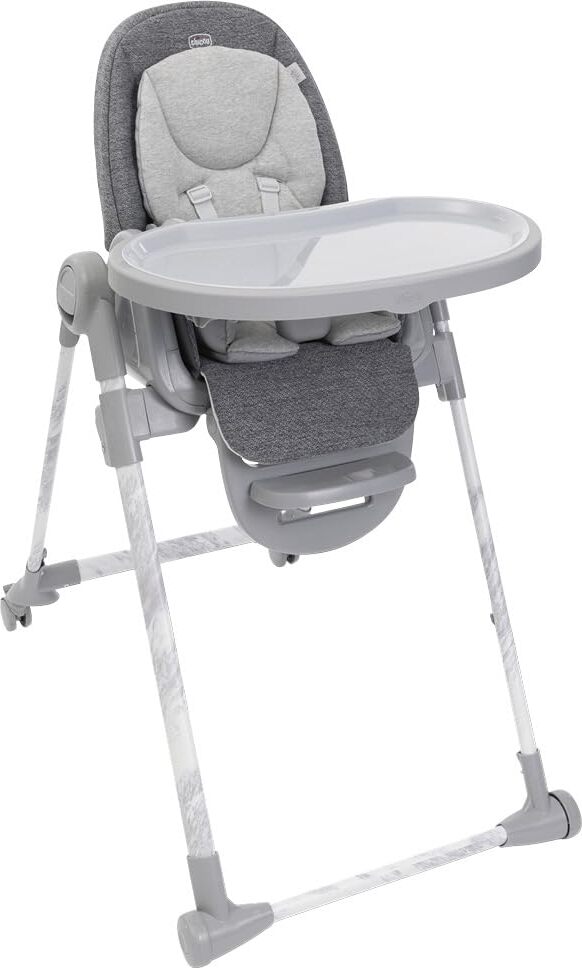 Chicco Polly Armonia Chaise Haute Bebé Évolutive, pour Enfants de 0 Mois à 40 kg, 9 Niveaux de Hauteur, 3 Positions d'Inclinaison, Repose-Pieds Réglables, Pliage compact, 4 Roues, Gris Clair