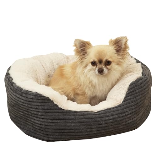 Rosewood Panier Chien en Jumbo Cord 63 x 53 x 15 cm Panier Ovale pour Petit et Moyen Chien avec Intérieur Peluche Bords Rehaussés Entrée Basse Lavable à 30 Degrés Gris Crème