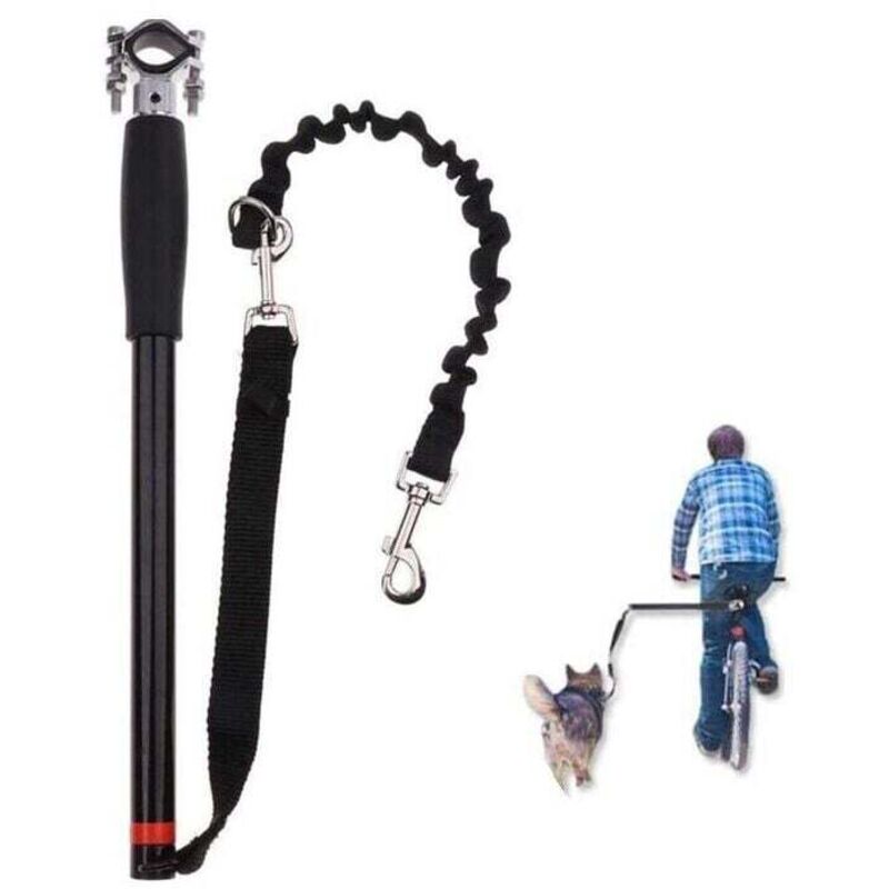 Laisse velo pour chien avec fixation sur tige de selle barre laterale en acier laisse elastique amovible