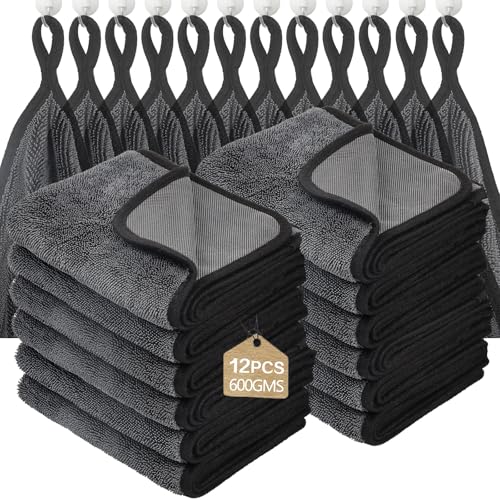 WUFANC 12 Pièces Chiffon Microfibre Voiture - 60 cm x 40 cm Microfibre Sechage Voiture, Perdent Pas de Peluches, Très Absorbants - Chiffon Micro Fibre pour Nettoyer Voitures, Motos, Fenêtres et Vitres