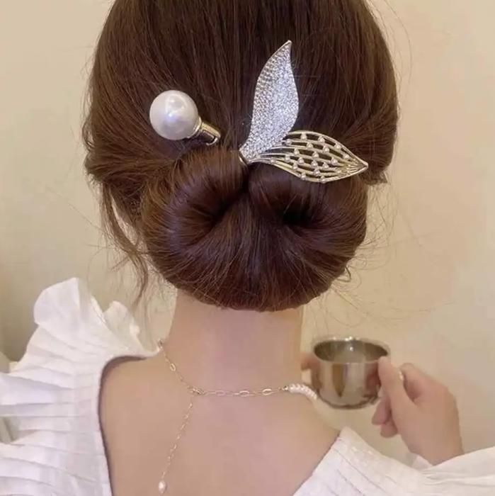 Accessoire chignon magique queue de poisson avec boule nacrée - barrette bun noir/blanc