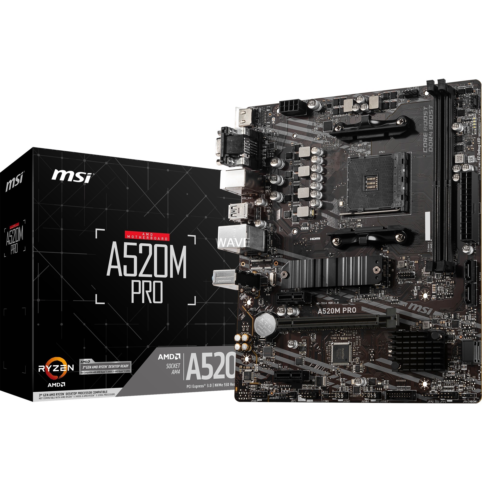 MSI | A520M PRO | Famille de processeurs AMD | Socle de processeur AM4 | DDR4 | Emplacements mémoire 2 | Nombre de connecteurs SATA | Chipset AMD A | Micro ATX