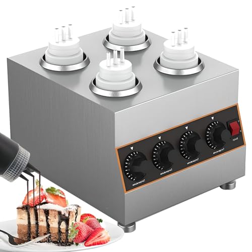 Distributeur de chocolat en acier inoxydable, chauffe-sauce électrique professionnel avec température réglable de 30 à 85 °C, machine de maintien au chaud pour confitures avec 4 bouteilles de sauce d