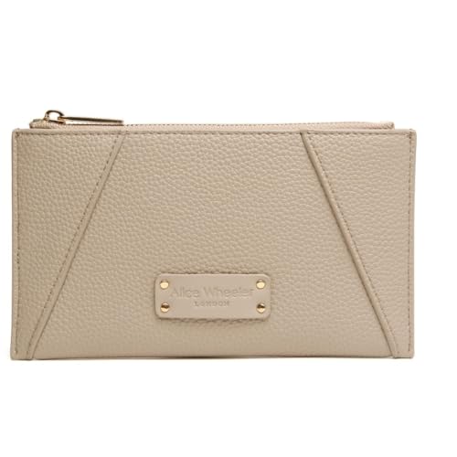 Alice Wheeler London Kensington Purse - Portefeuille compact en cuir végétalien avec logo gravé et détails aux coins - Porte-monnaie élégant pour tous les jours - Pierre, olive, chocolat - 11 x 8,5 cm