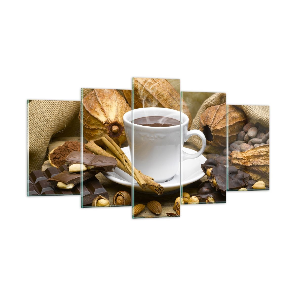 Impression sur Verre 160x85cm Tableaux Image Tasse chocolat boisson cannelle