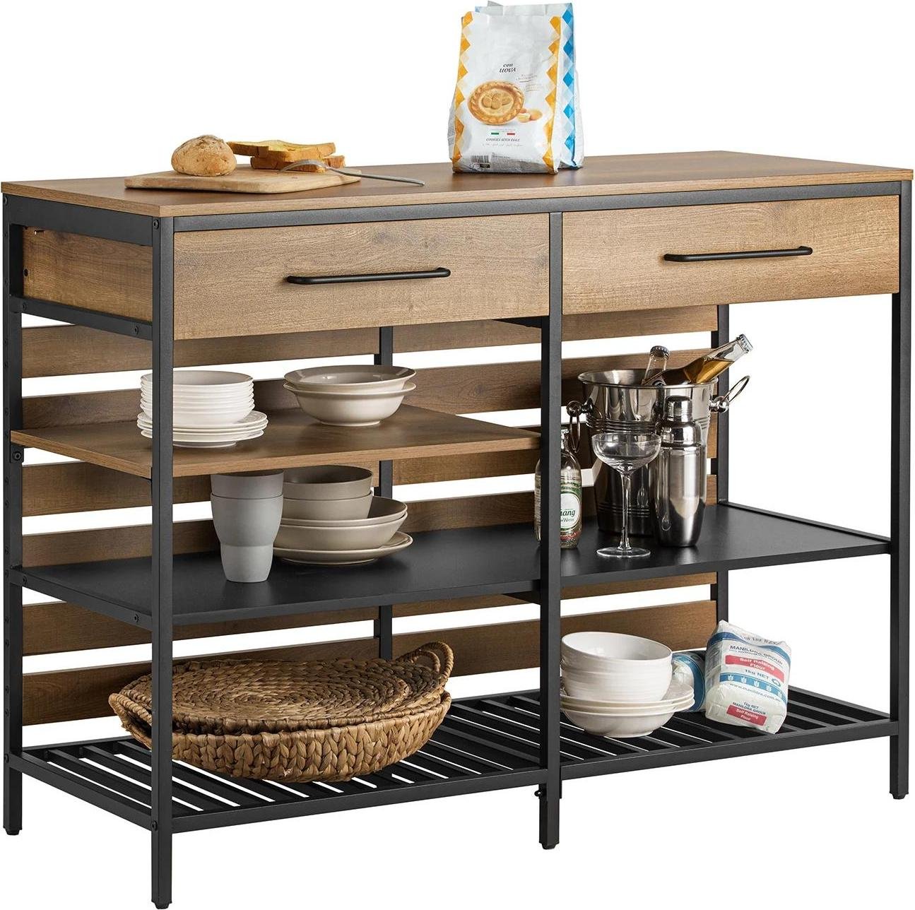 FSB85-PF Ilot de cuisine/chariot de cuisine, buffet avec tiroir et étagères, brun chocolat