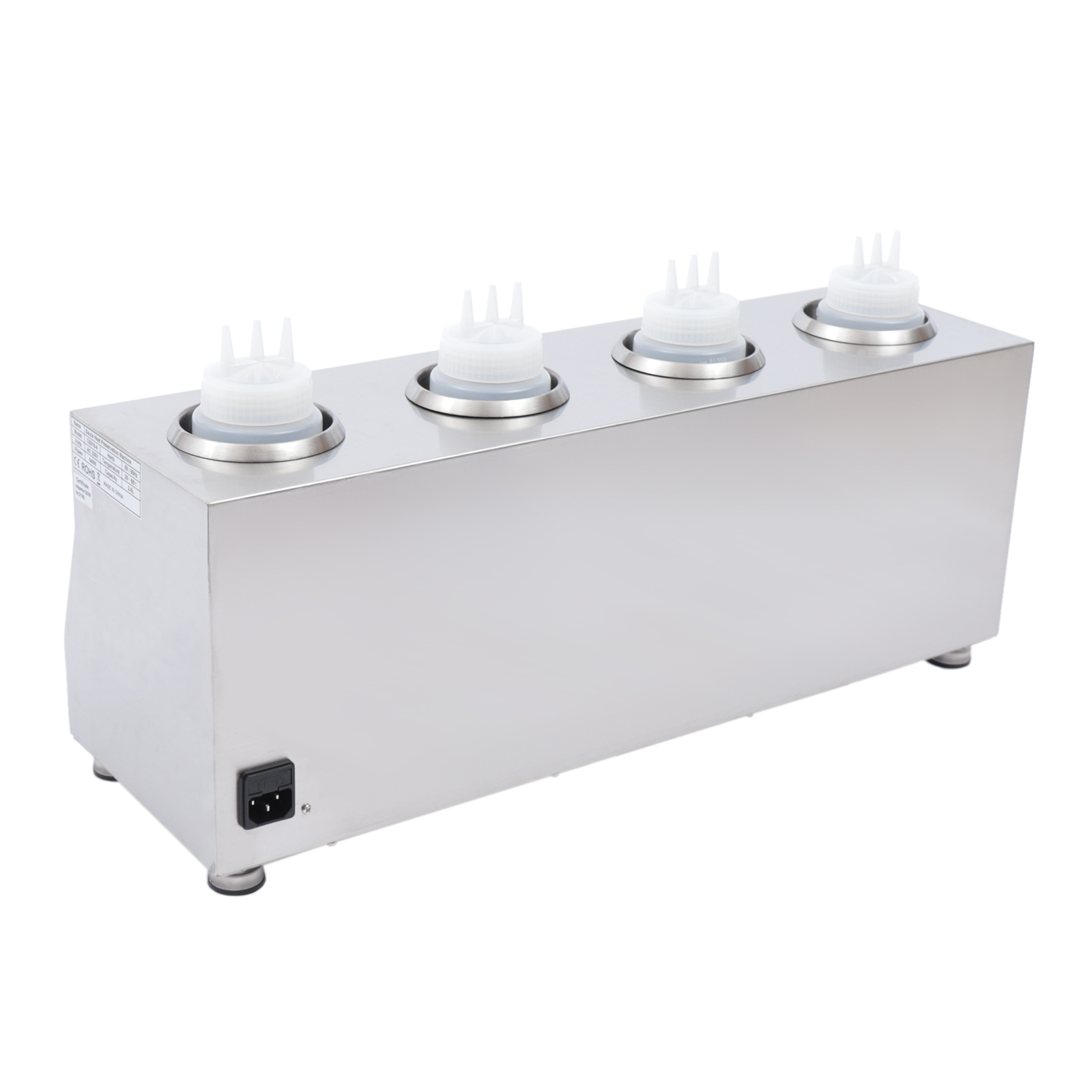 4 bouteilles Chauffe-sauce électrique Acier inoxydable avec réglage indépendant de la température Chauffe-plats Chauffe-sauce 30-85°C pour chocolat Fromage Confiture