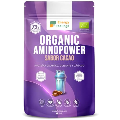 Energy Feelings Vegan Protein Powder Chocolat 73% 500g, Protéine Végétale Bio en Poudre pour Maigrir, Grossir et Musculation, Protéine de Pois, Chanvre et Riz, Sans Sucre et Sans Lactose