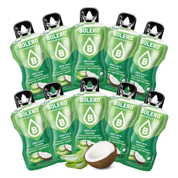 BOLERO Aloe Vera Coco 10 sticks 9g poudre boisson sans sucre à la Stevia Faible en calories sans colorant ni conservateur