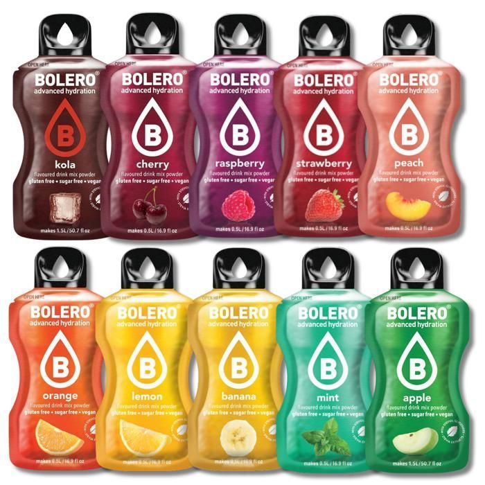 Bolero Boissons en poudre Set 6 sortes sans sucre Stevia Vegan Diète Fitness