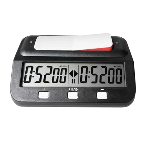 Minuteur d'échecs numérique de qualité tournoi avec alarme, mode chronomètre, stockage de mémoire et double base de temps. Convient pour les matchs d'échecs. Comprend 2 piles AA (Noir)