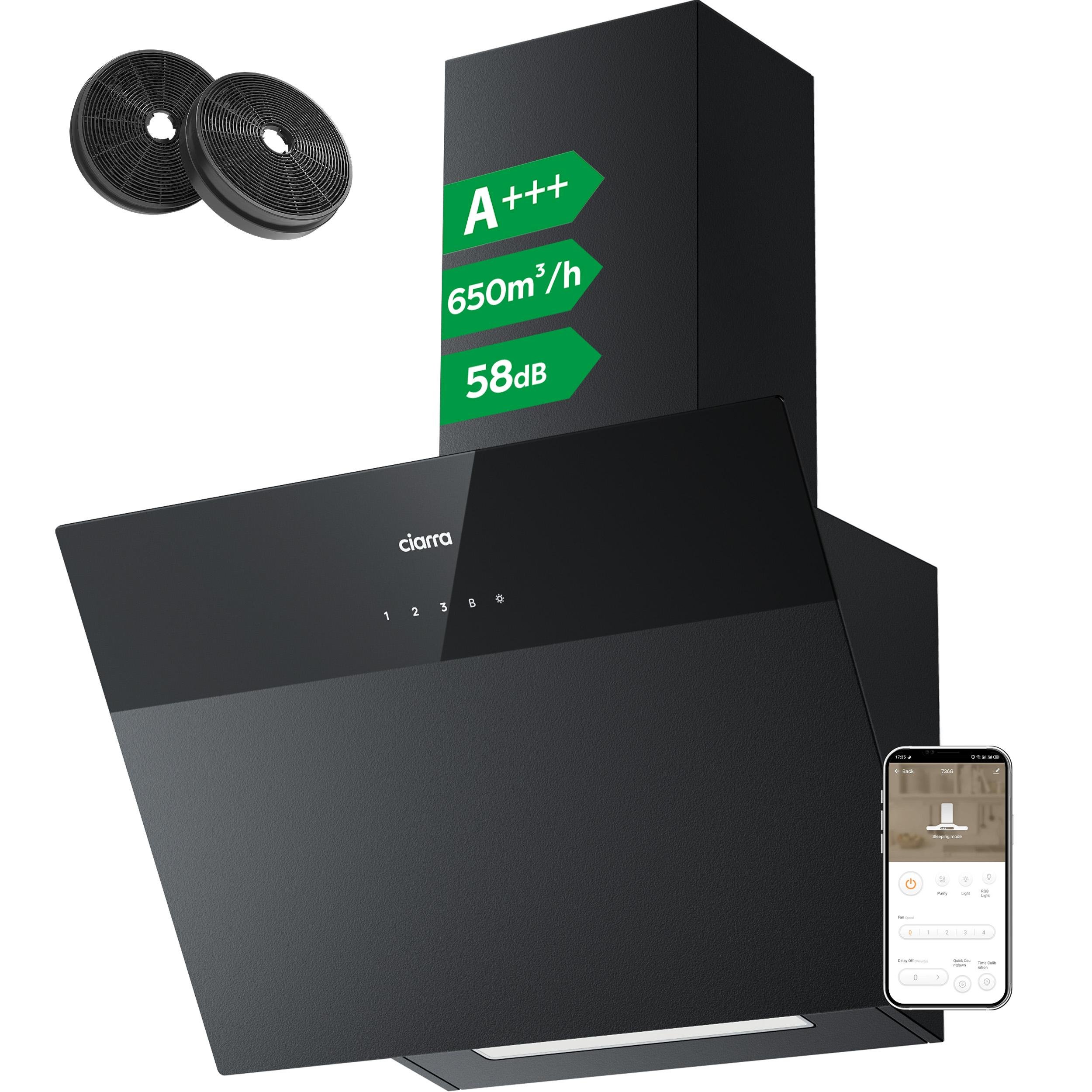 Ciarra CBCB6903D Hotte Aspirante 60cm Classe A+ 220 m³/h et Plaque Induction 4 Foyer 6000W CABBIH4-A