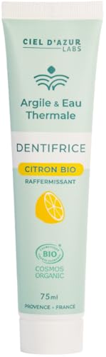 CIEL D'AZUR LABS - Denticlay Argile - Dentifrice Bio à l'Argile Blanche et à l'Eau Thermale de Digne les Bains - Certifié Bio Cosmos Organic - Tube 75ml - Citron