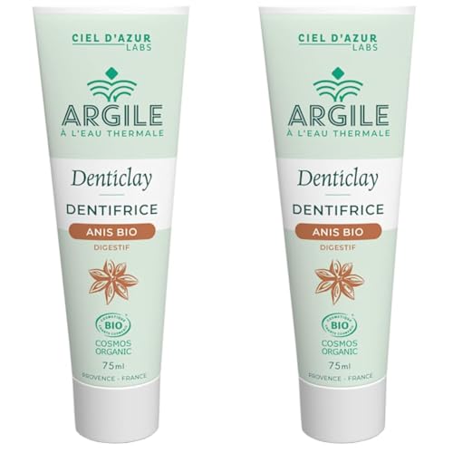 CIEL D'AZUR LABS - Denticlay Argile - Dentifrice Bio à l'Argile Blanche et à l'Eau Thermale de Digne les Bains - Certifié Bio Cosmos Organic - Tube 75ml - Anis (Lot de 2)